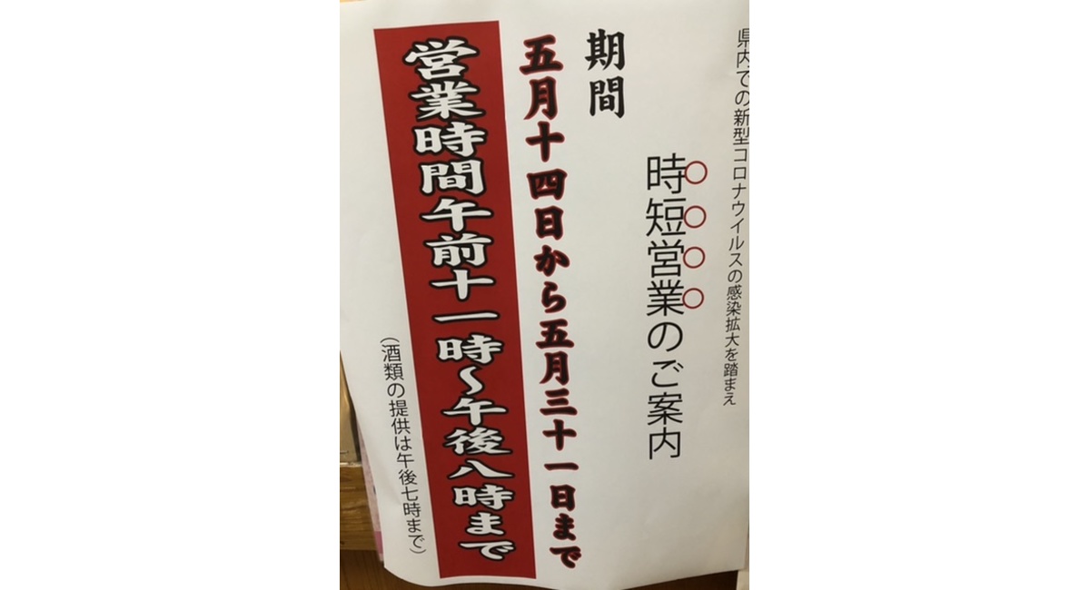 本日福島県知事より県内全域に営業時間の短縮要請が出されました。